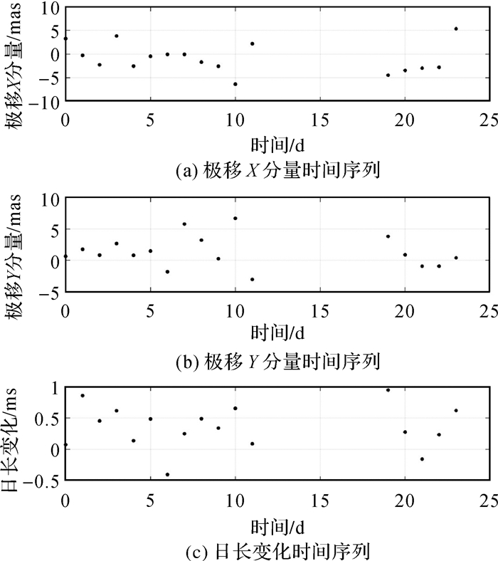| 图 12 极移和日长变化时间序列 Fig. 12 Time series of pole motion and ΔLOD |