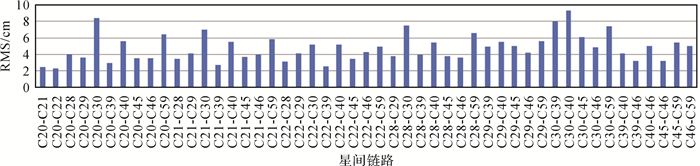 | 图 5 49条链路的星间链路残差RMS Fig. 5 RMS of orbit determination residual for all 49 ISL |
