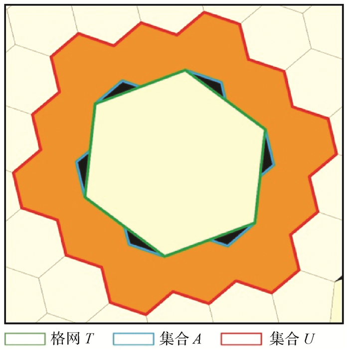 本文参照开源算法Uber-H3[28]构建了多层次格网剖分系统,如图 3所示。在该系统中,任意一个地理坐标在每个格网层次中都具有唯一的格网索引与之相对应,通过格网索引可以获取到任意格网的邻接格网,不同层次的格网在范围上具有上下层涵盖关系。