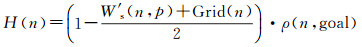 此外,为了保证启发因素量纲统一,且H(n)估计值不能大于当前格网n到终点格网goal的实际值[35],须先对其进行归一化操作