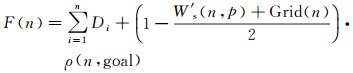 式中,Ws(n, p)为n格网处坡度对格网通行能力的影响能力,求解过程中的邻接格网为当前格网n与它的前驱格网p;Grid(n)为当前格网n的通行能力值;ρ(n, goal)为当前格网n到终点格网goal的欧氏距离。