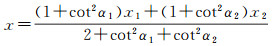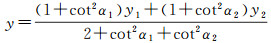 设l′和l1的夹为α1,设l′和l2的夹为α2,l′的方位角为π/2,k1和α1的关系为k1=cot α1,k2和α2的关系为k2=cot α2,代入式(8)可得