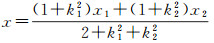 将y1=k1x1+b1和y2=k2x2+b2代入式(5),可得