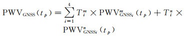 重复步骤式(6)—式(9),将得到的填补值PWVGNSSim(tp)和PWVGNSSin(tp)加权组合,最终得到tp历元的PWV值,公式如下