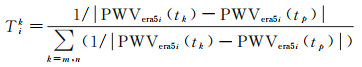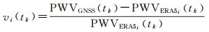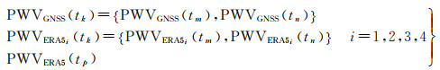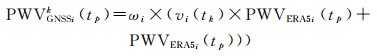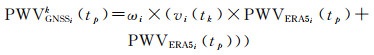 式中,PWVGNSS(tk)为GNSS提供的公共历元的PWV值;PWVERA5i(tk)为ERA5为提供的公共历元的PWV值;PWVERA5(tp)为ERA5提供的待填补历元的PWV值。