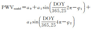 式中,DOY表示年积日;a0、a1、a2表示最小二乘估计得到的模型振幅系数;φ1、φ2表示初始相位。该方法已被广泛应用于月时间分辨率的PWV缺失填补研究中[23]。
