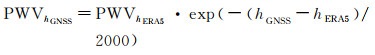 式中,PWVhGNSS和PWVhERA5分别表示GNSS和ERA5格网点高程上对应的PWV数据。