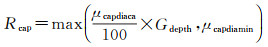 式中,Rcap是节点的吸收域;μcapdiaca为节点捕捉距离比例系数,设置为5;μcapdiamin为最小捕捉半径,设置为0.5;Gdepth是以节点为中心3倍网格为半径的圆内水深平均值。水深点的影响范围为