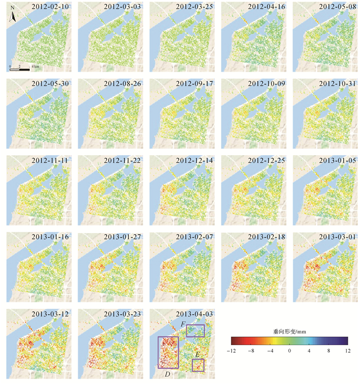 | 图 7 研究区的时序形变 Fig. 7 Time-series deformation of the study area |