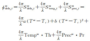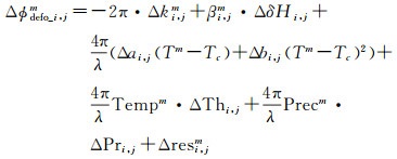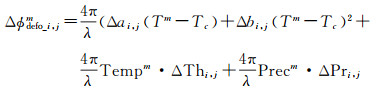 以双曲线模型作为软土形变基础模型,融入热膨胀系数和降水参数后,PS点i的形变相位分量ϕdefo_im可以表示为