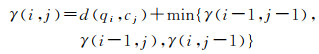 式中,γ(i, j)表示序列Q[1:i]与序列C[1:j]之间的DTW距离,也就是当前单元格和相邻元素的最小累计距离。