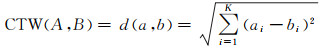 假设DTW算法对齐后的序列长度为K(式(1)中的索引数),经过CTW算法收敛后,建筑物A可以表示为a=[a1, a2, …, aK],建筑物B可以表示为b=[b1, b2, …, bK],序列a和b之间的欧氏距离即为建筑物A和B之间的CTW距离