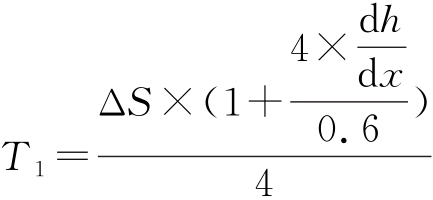 表示高度相对于步行距离的变化率;ΔS表示行走距离,该公式由Naismith规则修正得到[37];T2表示植被覆盖物摩擦额外增加的通过时间;Cf表示摩擦系数,由行人在不同地表覆盖下的行走速度得到[38],其中乔木区、灌木区、草地区的摩擦系数分别为0.96、0.89、0.81 s·m-1。