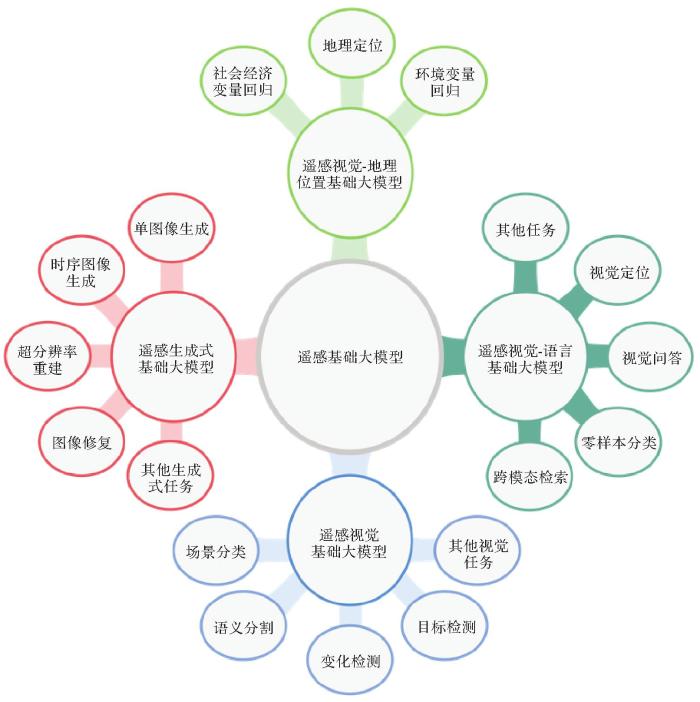... (4)地学知识图谱构建与引导.在具体的遥感智能解译任务中引入地学知识以提升深度网络的性能和可解释性已经受到许多学者关注.地学知识图谱的构建和利用也被认为是未来遥感解译的发展趋势之一[84,91].通过将源自文本语料库、时空信息、地形地貌、场景先验与专家知识等的地学知识整合,以知识图谱的统一形式进行重构并融入遥感基础模型的训练和推理过程是提升基础模型的性能和可解释性的重要方向之一.地学知识图谱的构建与融入不仅可以提升遥感基础大模型的实际性能表现,还有望为遥感下游应用提供更为全面和深度的结果溯源解释. ...