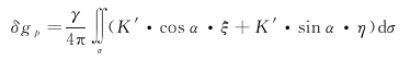 式中,γ表示正常重力;ξ、η分别表示垂线偏差的子午分量和卯酉分量;α表示计算点到观测点的方位角,核函数K(ψpq)的导数表示为
