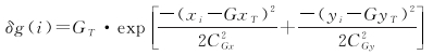 式中,GT表示局部区域内重力场(如重力异常、扰动重力)的峰值;GxT、GyT表示峰值对应的经度、纬度信息;CGx、CGy表示经度、纬度方向重力场变化的幅度;xi、yi表示每个重力场变量对应的经纬度信息。