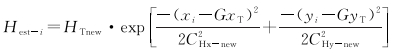 引入先验海底地形模型Hs(i),i=1,2, …, n,格网大小为1′×1′。利用先验海底地形数据按照高斯曲面函数模型(式(5))及最小二乘原理求解得到5个特征参数HT、HxT、HyT、CHx、CHy